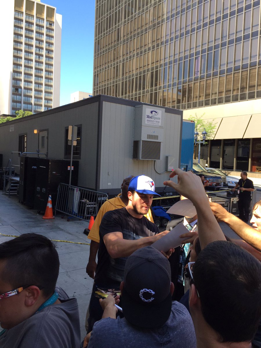 Durante el programa de Conan no se permiten los móviles, pero fuera sí que Stephen ha firmado autógrafos:
